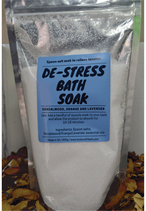 Melt away stress and tension with our De-Stress Bath Soak, expertly blended to calm the mind and body.